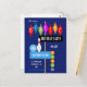 Royal blue themed birthday bowling party invitation postcard customisable to your event specifics.