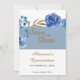 Royal Blue Rose and Gold Leaf Quinceanera Photo Save The Date