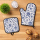 Royal Blue Roses Floral Pattern Oven Mitt & Pot Holder Set