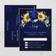 Royal Blue Rustic Sunflower Modern Floral RSVP Pos Postcard