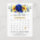 Royal Blue Rustic Sunflower Modern Save the Date Postcard