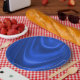 Royal blue satin paper plates. These beautiful royal blue paper plates can be customised with text in the font style of your choice.