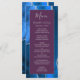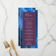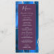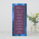 This elegant, modern wedding menu features a watercolor royal blue agate background trimmed with silver faux glitter. The text appears in elegant silver grey handwriting and copperplate fonts on a plum rectangle. The agate design is repeated on the reverse.