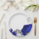 Gorgeous royal blue rose and lilies with silver flowers botanical paper plate