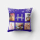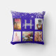 Royal blue silver glitter photo collage name cushion