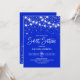 This majestic and glamourous sweet sixteen birthday party invitation is perfect for the girly girl. It features glowing hanging light strands on top of faux printed silver sparkly glitter confetti on a royal blue background inspired by stars in the night sky. It's pretty, chic, modern, trendy, and cool; the perfect design for your daughter's special day.