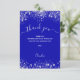 A royal blue background decorated with faux silver glitter, sparkles. Large hand lettered script with swashes and the text: Thank You. Personalise and add your thank you note and name.