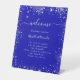 A royal blue background, decorated with faux silver glitter sparkles. White text. Personalise and add your names and the wedding program.
