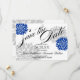© 2013 Socialite Designs. Our beautiful script / calligraphy save-the-date text and royal blue and silver-grey colour flower design elements add a touch of elegance to this save-the-date announcement. Easily replace our template text with your information. All design elements can be resized, moved or deleted individually to suit you. Press the "Customise it" button to view and change the font, text layout, or customise the design elements.
