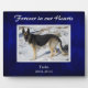 A dramatic dark royal blue gradient background is the setting for your pet's photograph within a silver coloured frame. The text is also in silver, and all the text is fully customisable.