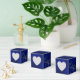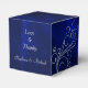 This is a stylish, rich looking wedding favour box, with your special custom message and your first names in silver on the back. Pretty silver swirls finish off each side of the box, and everything is placed on a deep royal blue gradient background. This favour box matches the Royal Blue Silver Swirl Monogram Wedding Invitations in our store.