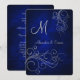 Royal Blue Silver Swirl Monogram Formal Wedding Invitation