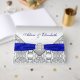 Elegant royal blue and silver guest book with royal blue diamond ribbon on a beautiful silver lace background. This beautiful royal blue wedding guest book is easily customised for your event by simply adding your details in the font style of your choice.