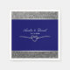 The deep royal blue base creates a dramatic backdrop for the refined silver details, making these napkins especially suitable for black-tie receptions, winter weddings, ballroom venues, and upscale celebrations. The intertwined rope heart symbolises unity and timeless love, while the customisable names and wedding date add a personal finishing touch.