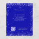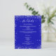 A modern, elegant wedding program/details/timeline.  A royal blue coloured background decorated with faux silver glitter sparkles. Personalise and add your names and wedding details. White coloured letters.