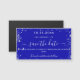 A modern and elegant Save the Date magnet for a wedding. A royal blue background decorated with faux silver glitter, sparkles. Personalise and add a date and names. The text: Save the Date is written with a large trendy hand lettered style script.