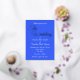 Simple style wedding invitation on a trendy, royal blue colour background with "The Wedding" printed in stylised script with foil colour of your choice. Edit name, date, location, etc., with your own information printed in white lettering. Designed to coordinate with our Royal Blue Simple Style Wedding collection.