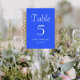 Guide your wedding reception guests to their table with this simple style table number card that features white, stylised lettering on a trendy, royal blue colour background. Design is on each side of card. Edit your card to change table number, wedding couple's names and date . Order cards separately for each table number.