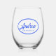 A trendy wedding party gift for your groomsman! Stemless wine glass that features the name of your groomsman in royal blue colour printed in a stylised script and surrounded by an oval design of the same colour. Personalise your wine glass by replacing name with groomsman name. A great party supply idea for a bachelor party!