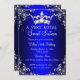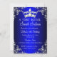 Royal Blue Sweet 16 Silver Pearl Damask crown Invitation