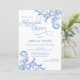 © Socialite Designs Inc. Beautiful corner swirls and flourishes rehearsal dinner invitation, painted in soft royal blue watercolor, that complements the matching wedding collection. An elegant invitation for any time of year celebration. If you require help with customising or would like other products created with this design, please do not hesitate to contact Socialite Designs.