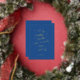 A modern royal blue holiday card with a wavy gold border and elegant shimmering lettering. This non photo holiday card is perfect for sending stylish and timeless Christmas greetings. The back features pre-written wishes with “simple joys” or space for your own personalised message. A bold and festive card to share warmth, cheer, and joy with loved ones this holiday season.