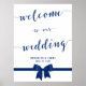 Royal blue and white wedding reception sign print with black bow and customisable text - you can add brides and grooms name and wedding date.