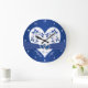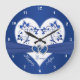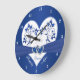 Royal Blue, White Floral Heart Happily Ever After Large Clock