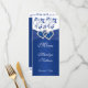 This royal blue and white floral wedding menu card has a PRINTED ribbon with a pair of PRINTED FAUX glitter and diamond joined hearts brooch on it that matches the wedding invitation shown below. If you require any assistance customising this with your details, or if you need any other matching items, please email niteowlstudio@gmail.com.