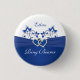 This personalised royal blue and white floral Flower Girl button with a PRINTED royal blue ribbon and a pair of PRINTED FAUX glitter and diamond jewel joined hearts brooch on it that matches the wedding invitation shown below. The text is customisable and so is the shape and size of the button. ****PLEASE note that if you change the shape that text may get cut off. It will print as it appears on your monitor, and you must allow adequate space around the edges, so do NOT run text right up to the edge. If you need anything changed, please email niteowlstudio@gmail.com.