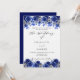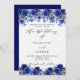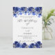 A white background, decorated with blue and white flowers. Personalise and add your names and details.