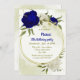 royal blue white flowers greenery birthday invitation
