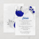 royal blue &white flowers silver botanical wedding enclosure card