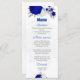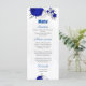 Romantic royal blue & white flowers with silver leaves botanical wedding menu card.