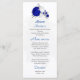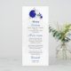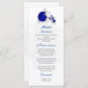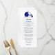 Romantic royal blue & white flowers with silver leaves botanical wedding menu card.
