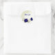 Beautiful wedding thank you favour sticker featuring royal blue and white flowers and green leaves