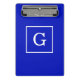 Royal Blue White Framed Initial Monogram Mini Clipboard