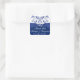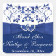 This 1.5" square shaped royal blue and white floral wedding favour thank you sticker has a PRINTED ribbon and bow with a PRINTED FAUX glitter and diamond jewel joined hearts on it that matches the wedding invitation shown below. You can use it to attach to your favours or place at your candy buffet to stick on baggies or boxes. If you require any additional matching items, please email your request to niteowlstudio@gmail.com.