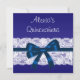 Royal navy blue white lace royal blue Quinceanera invitation.