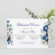 Royal Blue White Peony Silver Rehearsal Dinner Invitation