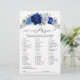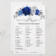 Elegant royal blue white silver theme bridal shower game what's in your purse featuring elegant bouquet of royal blue, Navy, silver, pure white colour rose flowers buds and sage green eucalyptus leaves. Please contact me for any help in customisation or if you need any other product with this design.