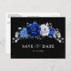 Royal Blue White Silver Floral Save the Date Postc Postcard