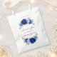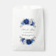 Elegant royal blue white silver theme wedding favour bag featuring elegant bouquet of royal blue, Navy, silver, pure white colour rose flowers buds and sage green eucalyptus leaves. Please contact me for any help in customisation or if you need any other product with this design.