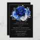Elegant royal blue white silver theme wedding Invitation featuring elegant bouquet of royal blue, Navy, silver, pure white colour rose flowers buds and sage green eucalyptus leaves. Please contact me for any help in customisation or if you need any other product with this design.