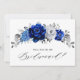 Elegant royal blue white silver theme will you be my bridesmaid proposal card featuring elegant bouquet of royal blue, Navy, silver, pure white colour rose flowers buds and sage green eucalyptus leaves. Please contact me for any help in customisation or if you need any other product with this design.
