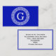 Royal Blue Wt Greek Key Rnd Frame Initial Monogram Business Card