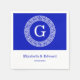 Royal Blue Wt Greek Key Rnd Frame Initial Monogram Napkin