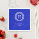 Royal Blue Wt Greek Key Rnd Frame Initial Monogram Napkin