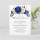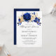 Elegant royal blue gold theme wedding rehearsal dinner invitation featuring elegant bouquet of royal blue, Navy, gold, yellow colour rose flowers buds and eucalyptus leaves. Please contact me for any help in customisation or if you need any other product with this design.