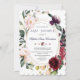 Modern and elegant design featuring burgundy, plum, blush watercolour flowers wreath around a faux gold frame, floral divider; on the back floral bouquet on burgundy background; on the back a floral bouquet on navy blue background. Matching items could be found in my Watercolor Flowers Baby Shower Collection.